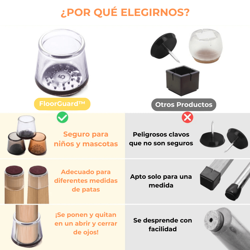 FloorGuard ™ garantizará una protección completa para todo tipo de muebles. Además de proteger tus muebles del desgaste y la humedad.