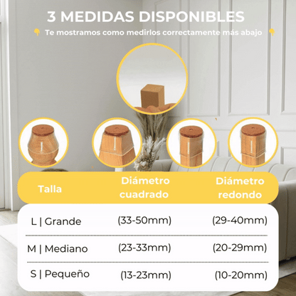 Olvídate de herramientas complicadas. Simplemente deslízalos sobre las patas de tu mueble sin necesidad de adhesivos ni clavos. ¡Se ponen y quitan en un abrir y cerrar de ojos!