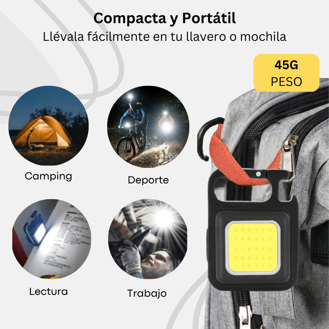 Llévala en bolso, mochila o cinturón, garantizando luz accesible en casa o en movimiento.